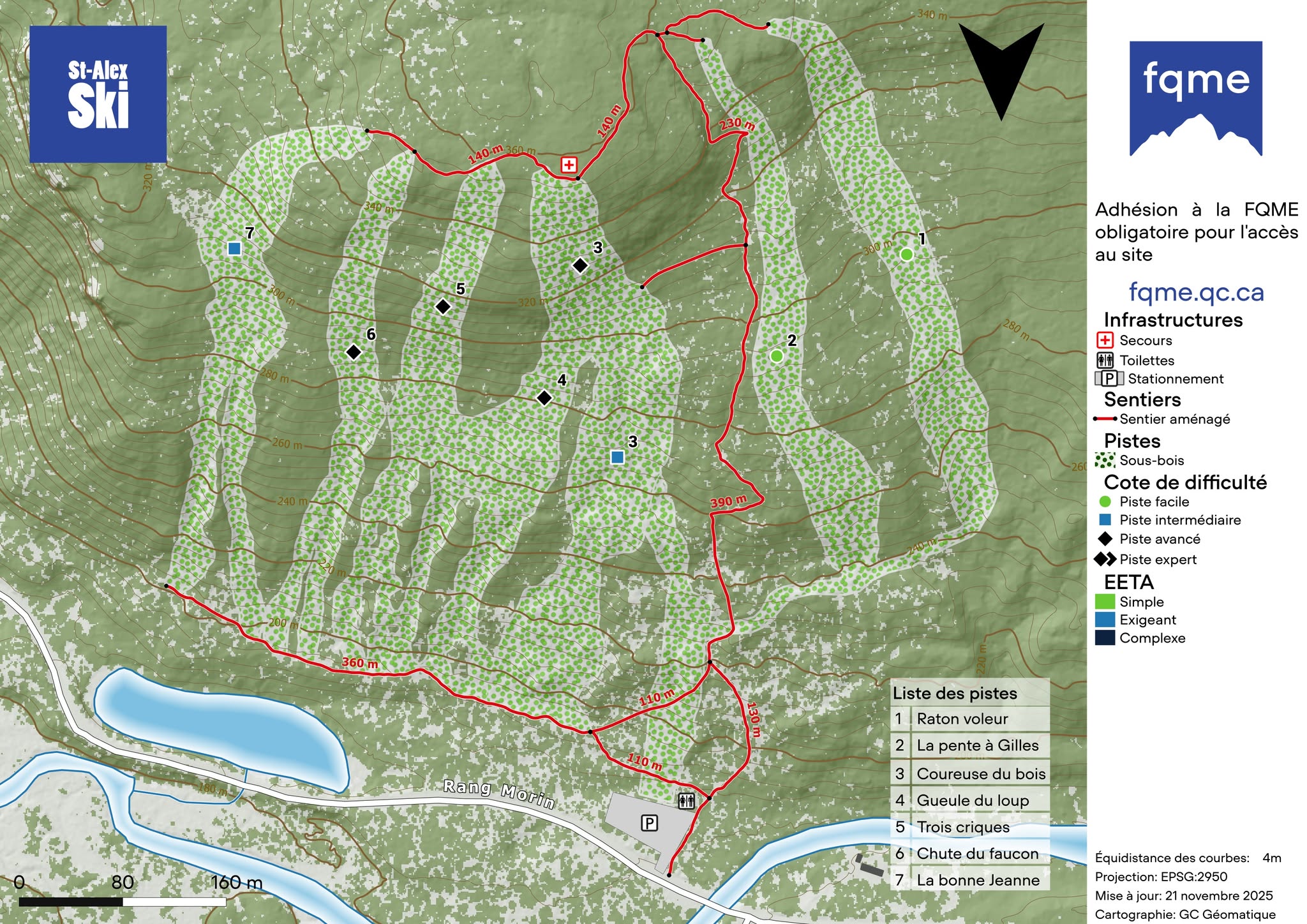 Vous trouverez des zones de glisse adaptées à tous les niveaux dans un cadre enchanteur. Que vous recherchiez des sous-bois largement ouverts, des couloirs étroits ou des falaises avec des sauts, St-Alex-Ski saura répondre à vos attentes, et cela en adoptant une approche minimale.